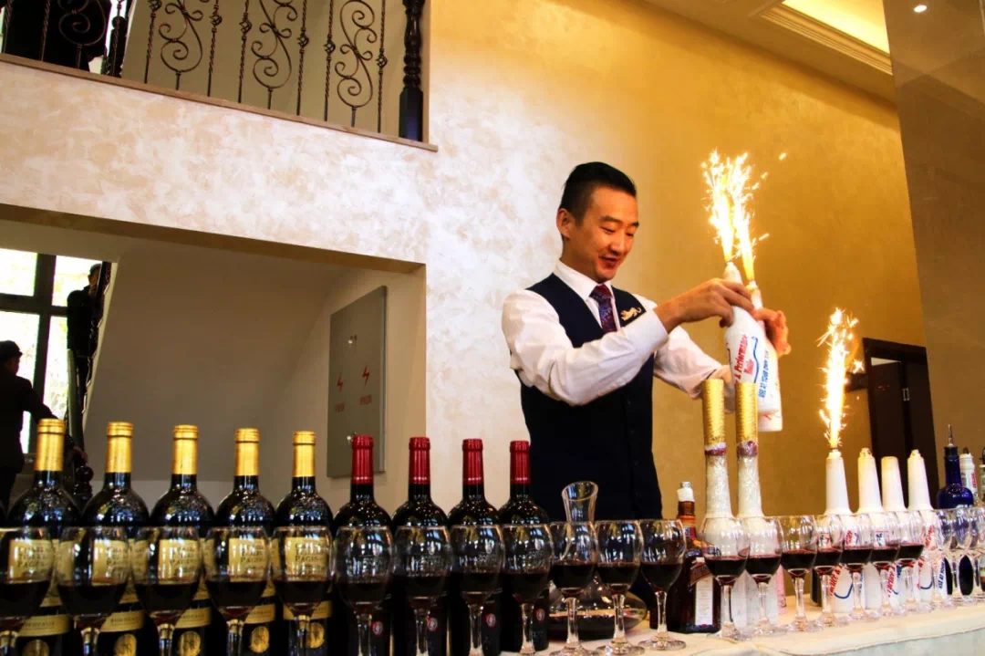 炫目多彩的花式调酒表演嗨翻全场,一场微醺酒宴浪漫上演,引得阵阵喝彩!
