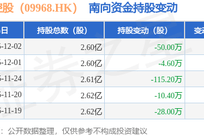 汇景控股(09968.HK):12月2日南向资金减持50万股