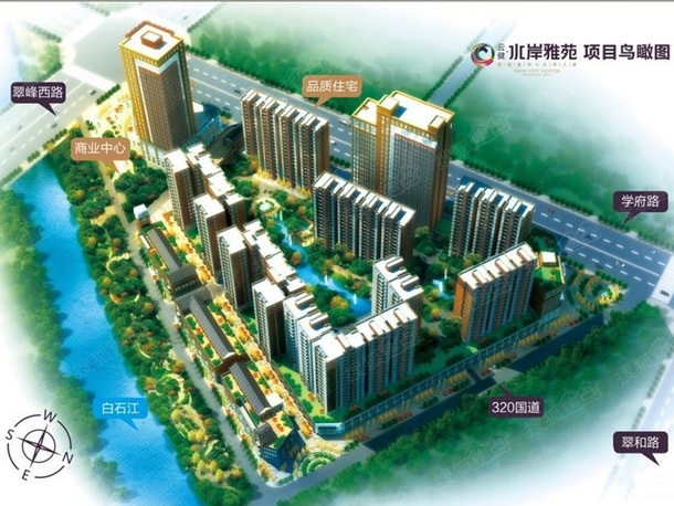 5路,22路公交车经过水岸雅苑,项目位于翠峰西路与学府路交叉口