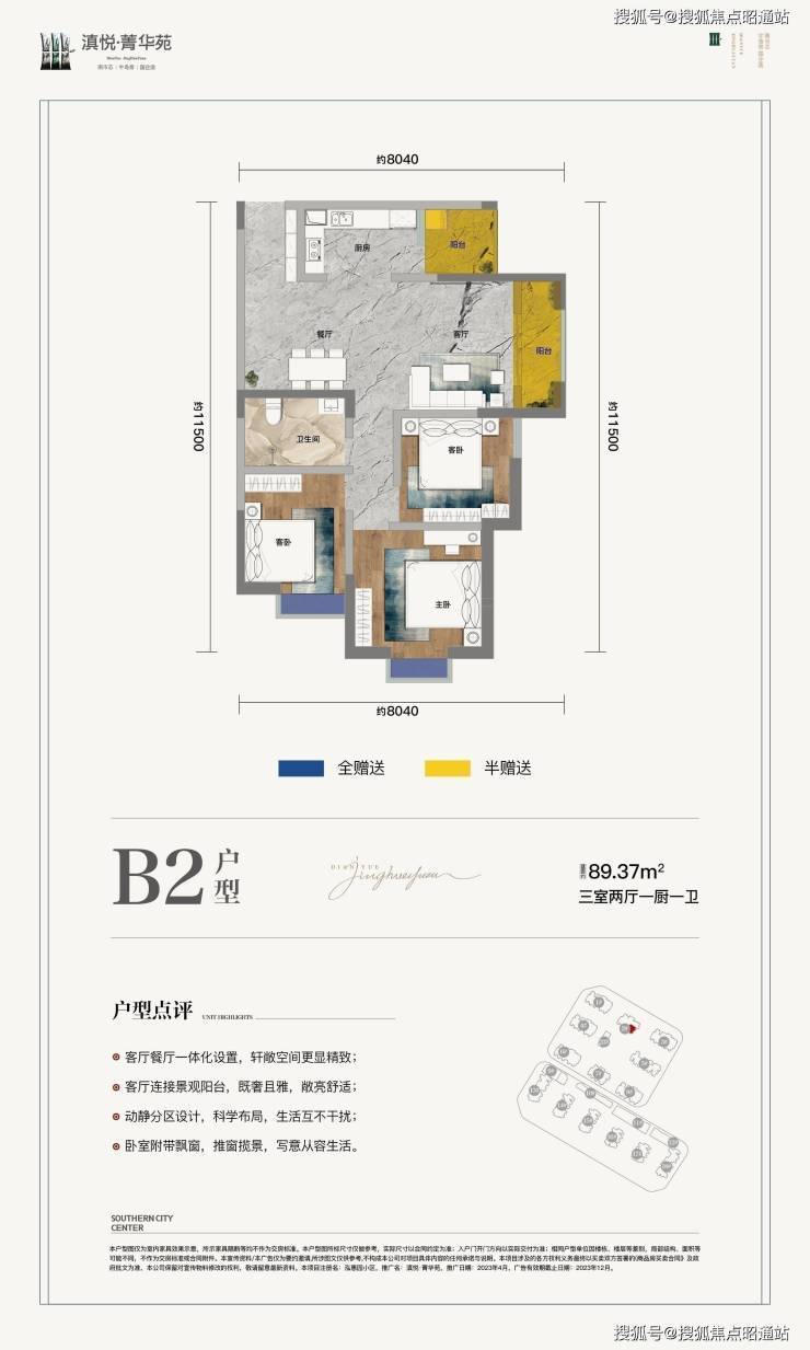 4、高居住舒适度:低楼层,低梯户比,点板式住宅,项目为16—20层,2T5—2T7户,点板结构设计,相比传统33层高层项目栋均户数少,梯户比低,居住舒适度更高;