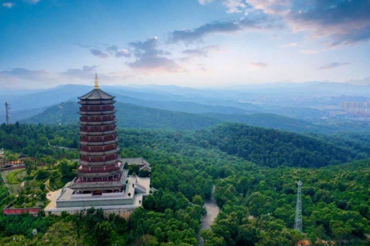 寥廓山,原名妙高山,因山势巍峨、视野开阔而得名。登临山巅,俯瞰四方,旷远寥廓,令人心旷神怡。左有翠峰,右有青峰,山下潇湘江环流,素有“诸仙朝大佛,金山系玉带”之美誉。站在山巅,曲靖的城市风光尽收眼底。