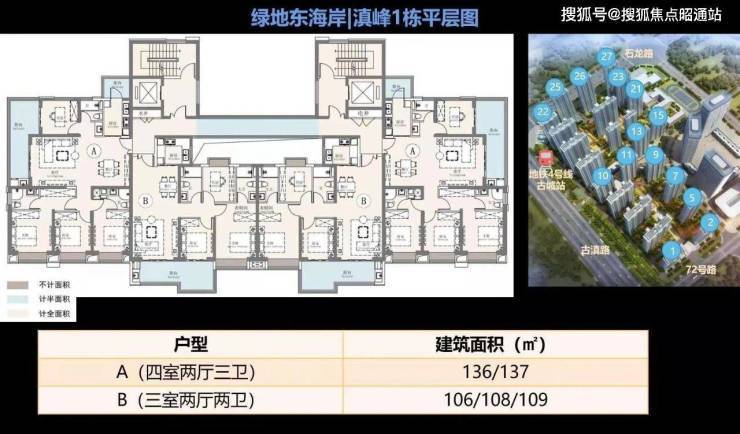 项目位于昆明市呈贡区古滇路与石龙路交汇处, 地铁4号线(西北新城至高铁南站)古城站C出入口位于地块内。 下楼就到地铁站口,在售34#地块绿地东海岸·滇峰东侧为花都路,西侧为古滇路,南侧为72号路,北侧是石龙路。项目距离最大的亚洲鲜切花交易中心呈贡斗南花市场约10分钟车程