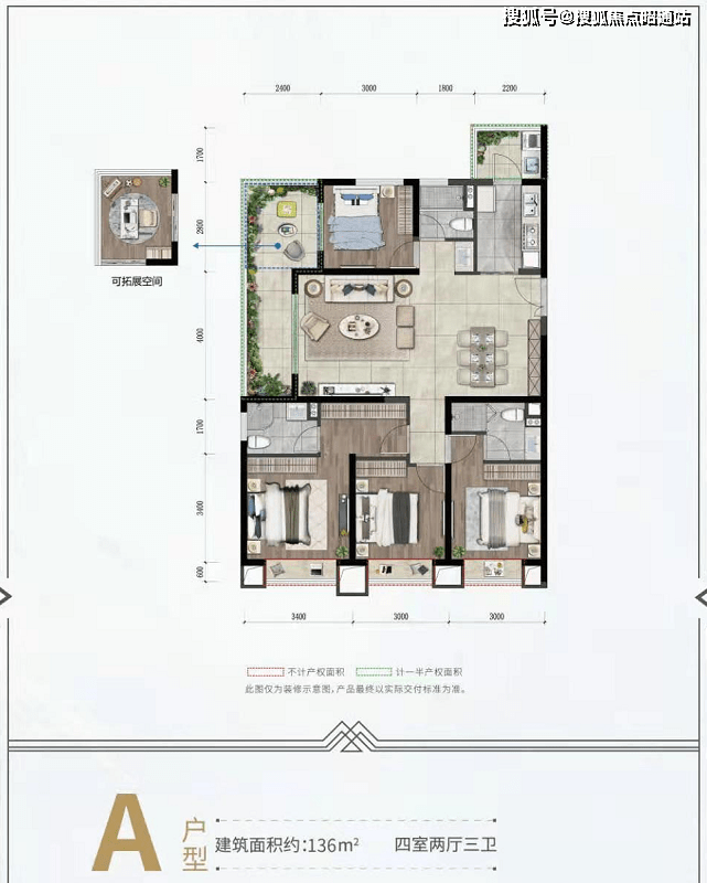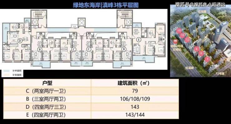 在售户型有三房79。㎡,108㎡、136㎡、四房143㎡
