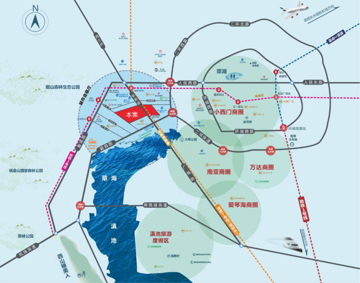 人民西路、西二环、碧鸡路、草海隧道(直通广福路、杭瑞高速等,多条城市主干道交汇,无缝链接主城芯。