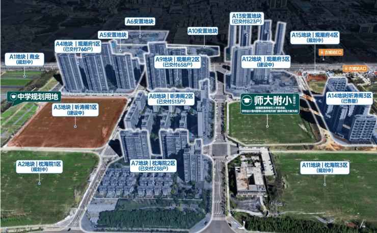 ①项目配套师大附小已正式启动建设,33班,公立公办,明年开学;