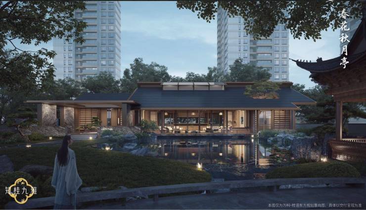 穿过逸香窟,春花秋月亭赫然出现,与前方的侯月湖遥相呼应,共同勾勒出中式园林的极致风雅。