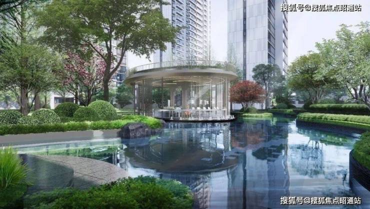 园林以碧台溪谷·璞韵风华为设计理念—打造“万方立体花园““一溪两岸”的云涧水居。