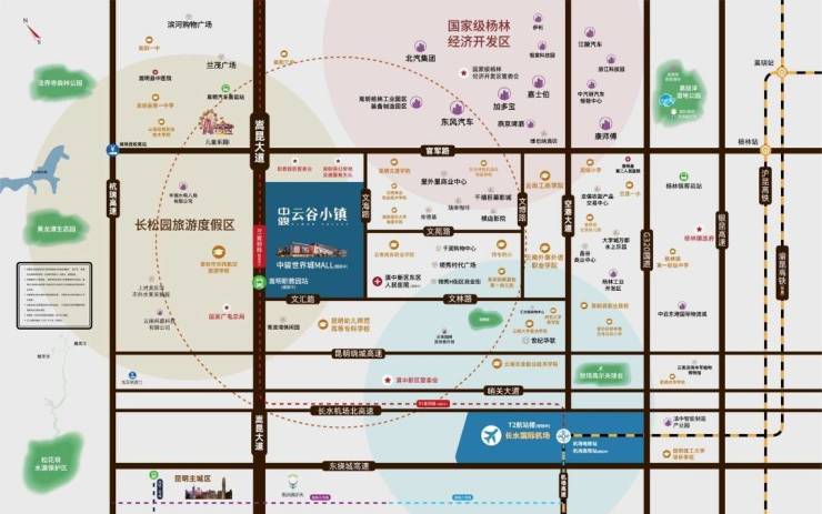 ①大交通(一港二铁六路二轨——长水机场近,T2航站楼正在扩建;沪昆高铁已通车/渝昆高铁2027年全线通车,全案紧邻全云南最宽嵩昆大道双向12车道城市中轴线,轻轨嵩明线规划中)