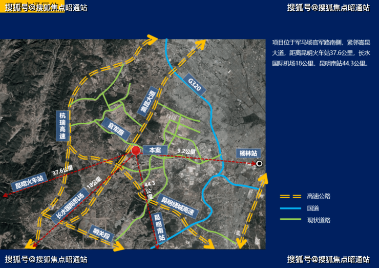 从空港新城区域交通可以看出,整个区域内交通网络十分发达,区域内呈“一港两铁三高速”的立体交通模式,不管是在城内自驾出游还是出省旅游,都有着方式多样并且绝佳的交通选择。空港片区与机场相邻,25分钟直达长水机场。